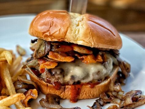 - To serve, put cheese-topped patties on each bun, add desired hamburger trimmings, finish with top bun and enjoy.