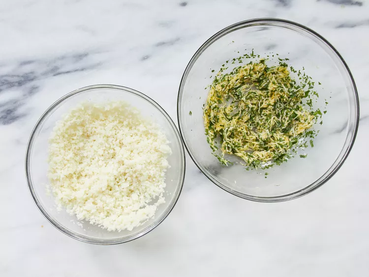 4. Stir Italian cheese blend, parsley, egg, garlic, salt, and pepper into cauliflower until evenly incorporated.