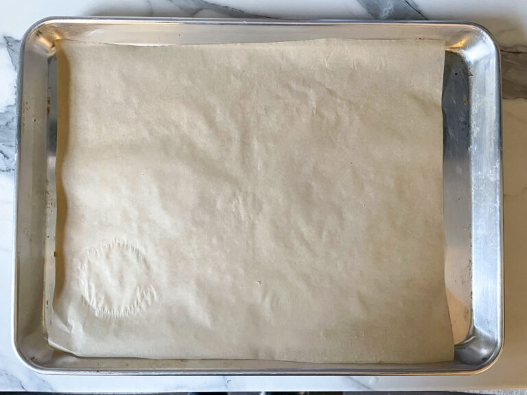 - Preheat oven to 425° F / 220° C. Line a half-sheet rimmed baking tray with parchment.