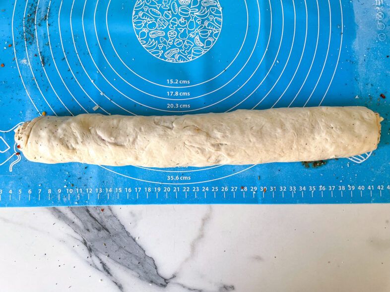 9. With a serrated knife, slice the log* into 1-inch pieces. You should have approximately 12 pieces total.