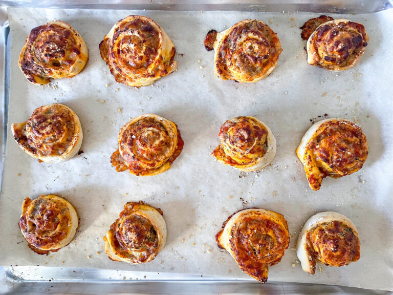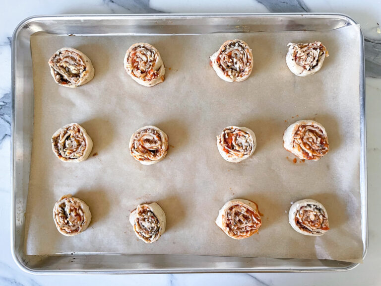 14. Store leftovers in an airtight container in the refrigerator for up to three days. To reheat, place pizza rolls on a parchment-lined tray and heat in 400° F / 205° C oven for 5 minutes, or until warmed through.