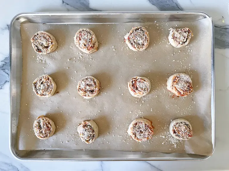 11. Sprinkle tops of the rolls with additional Parmesan cheese.