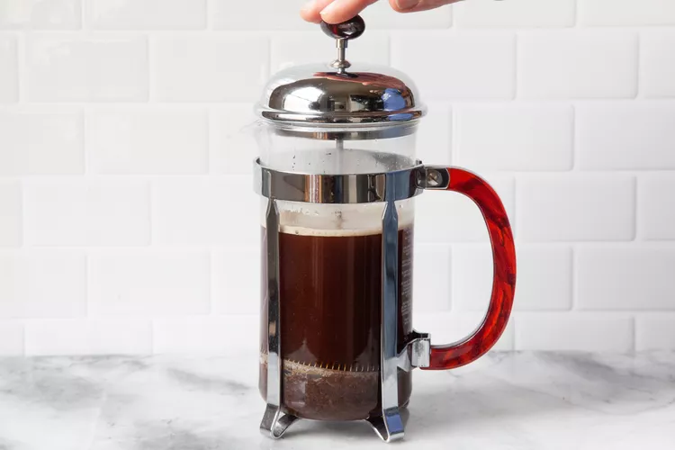 Then gently press the plunger down. Don’t press too hard or too fast. If the plunger feels tight, let go of the pressure a bit then press again. Keep pressing until the plunger won’t move anymore and the grounds are trapped at the bottom.
