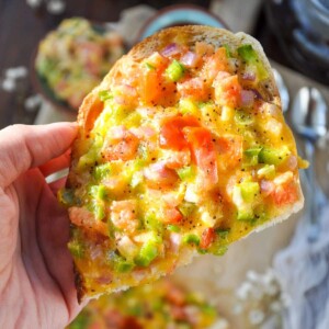 6. Preheat the oven to 400 degrees. Place bread slices into the toaster oven on a baking tray. Bake for 5-6 minutes until the toast is toasty and the cheese melts. Once done, you may use the toast setting for a toastier toast. Enjoy veggie toastie with ketchup or sweet & spicy chili sauce.