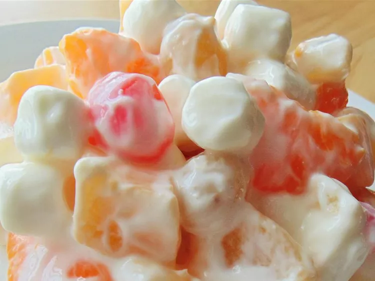 - Mix fruit cocktail, pineapple chunks, mandarin oranges, and marshmallows together in a large bowl. Add sour cream and stir until fruit is completely coated. Cover and refrigerate for 4 to 8 hours before serving.