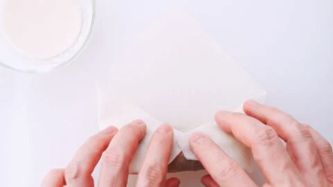 14. Line a bowl or wide cup with 3 sheets of paper towels. This will be used to drain the spring rolls in an upright position, so you want something that’s deep enough to hold the rolls standing up but wide enough that the rolls aren’t overcrowded.