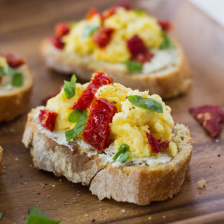 - Sprinkle the chopped sun-dried tomatoes and chopped fresh basil on each bruschetta.