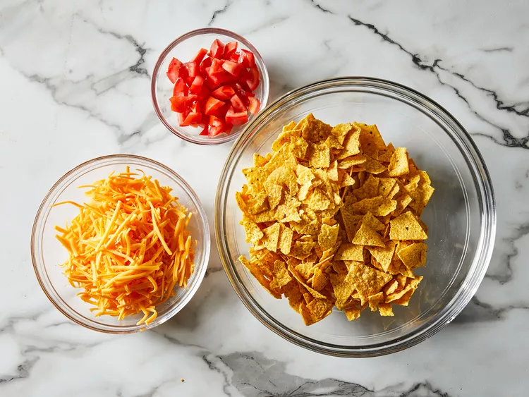 2. Crush the bag of chips, open the bag, and toss crushed chips into a large bowl.