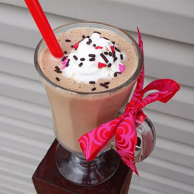 - In a blender, combine the ice cream, milk, chocolate drink mix and powdered egg whites. Cover, and blend until smooth. You may need to stop and stir once or twice to get it evenly mixed. The shake will be very thick.